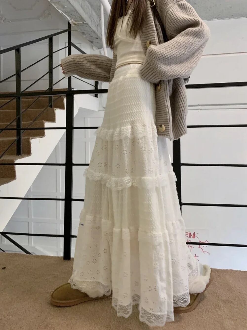 Deeptown-女性のフリルレーススカート、甘いフリル、春の妖精カワイイ、ストレッチケーキ、ヴィンテージレトロスカート、新しいファッション、y2k、2024 T240926110205_01