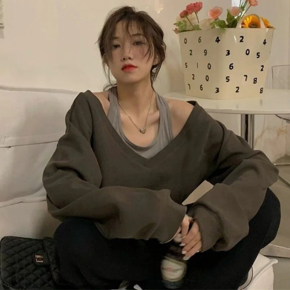 Deeptown-女性用スウェットシャツ,ヴィンテージ,原宿,オルゴール,だぶだぶ,韓国ファッション,スクエアショルダー,y2k T240926110213_01