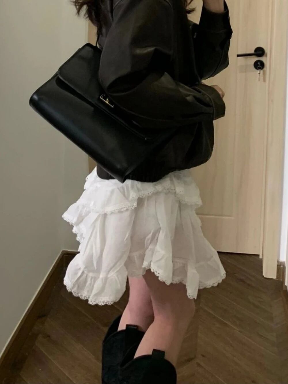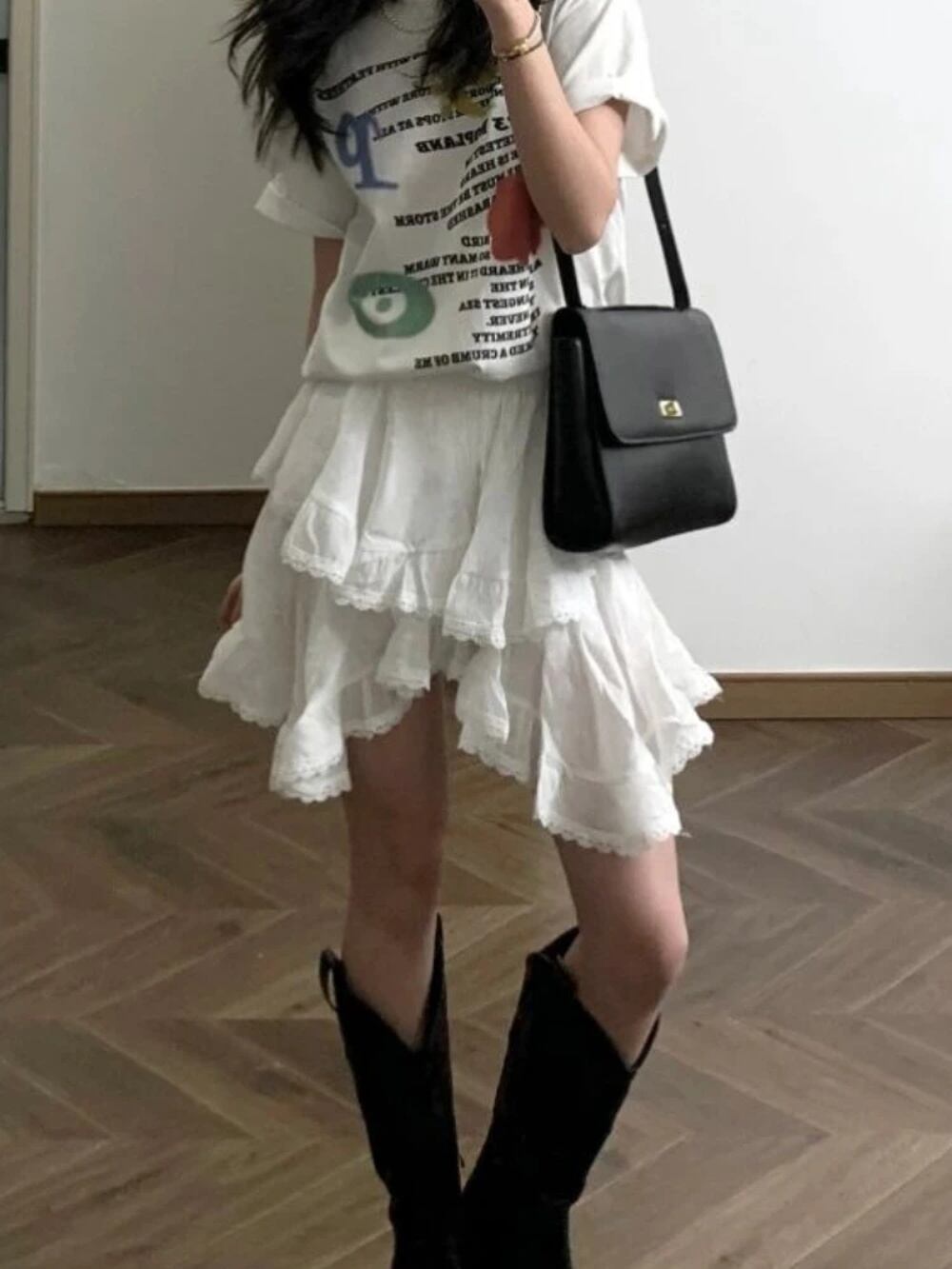 Deeptown-女性の不規則なフリルスカート、白いスカート、韓国のストリートウェア、Aラインレーススカート、夏、2021 T240926110233_01