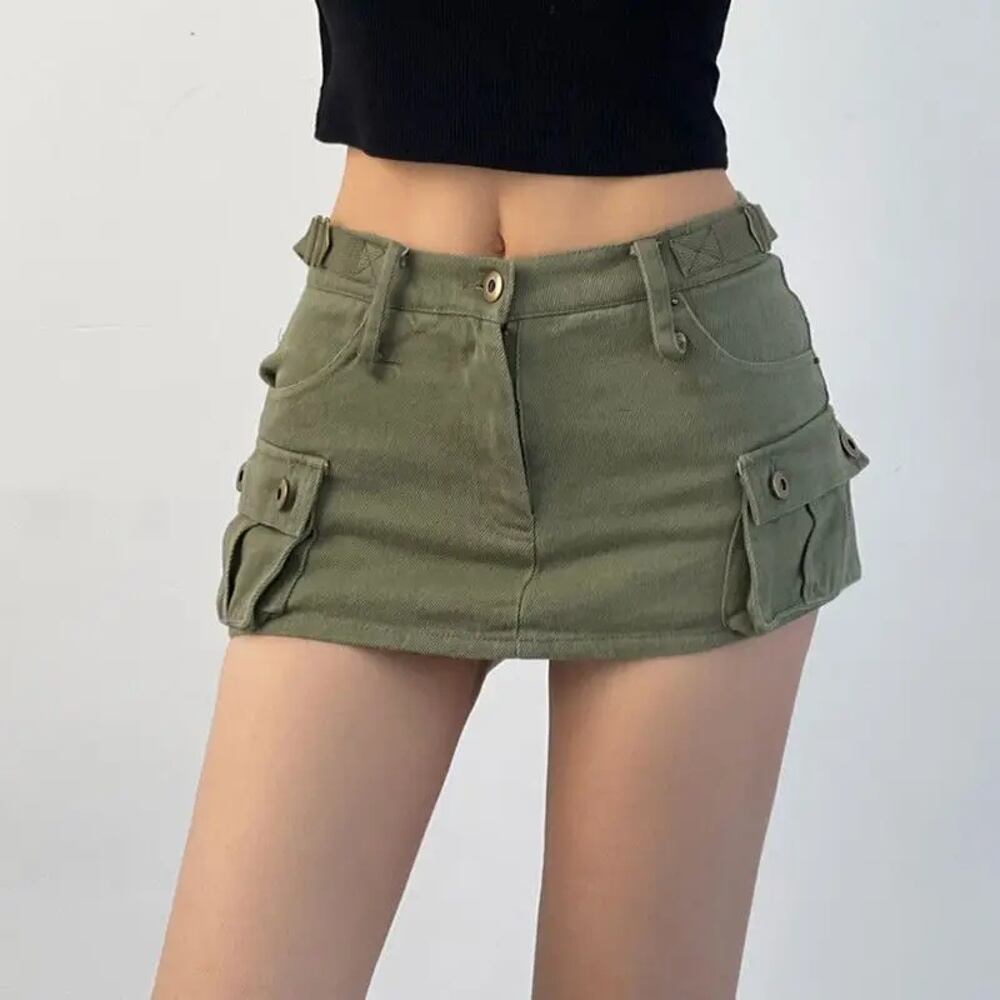 Deeptown-女性のためのカーゴミニスカート,韓国スタイル,ローウエスト,スリム,ヴィンテージ,セクシー,ストリートウェア,グリーン,サマー,y2k T240926110239_01