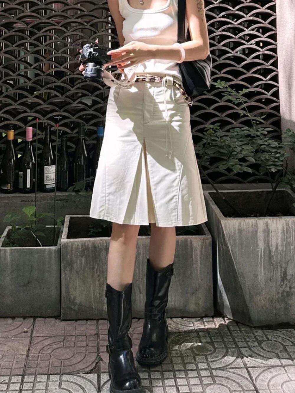 Deeptown-女性のヴィンテージ膝丈ミディスカート,ハイウエスト,不規則,レトロ,白,アメリカンストリートウェア,y2k,2024 T240926110354_01