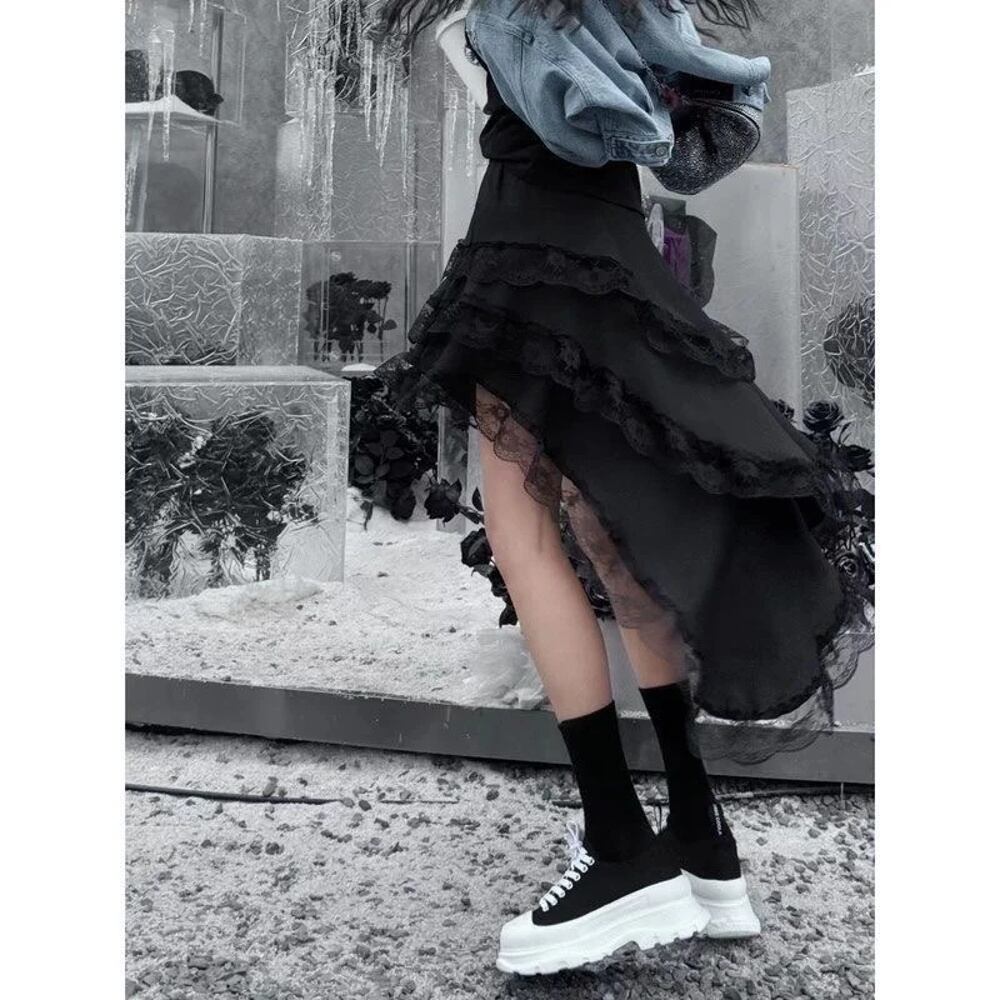 Deeptown-女性のためのフリルレース不規則なスカート、空中ブランコスカート、パッチワーク美容、ヴィンテージ韓国スタイル、エレガントな自由奔放に生きる白いスカート、y2k T240926110416_01