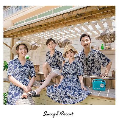アロハシャツ ワンピース 親子お揃い パパママキッズ ペアルック 親子コーデ 親子 花柄 上下セット レディース メンズ アロハシャツ ワンピ ペアルック ご家族お揃い 親子 アロハ 夏 海遊び 親子