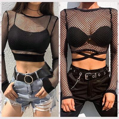 ダンス 衣装 ヒップホップ メッシュ トップス シースルー ジャズダンスシースルー 半袖 透け透け