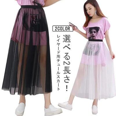 透け感 チュールスカート レディース スカート 重ね着 レイヤード フレア ロングスカート チュチュスカート ウエストゴム プリーツ フラワーレース 春 夏 ホワイト ブラック ダンス 衣装