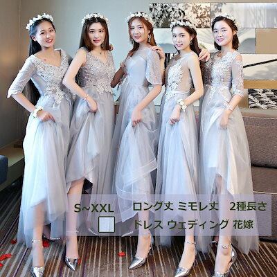 ドレス お呼ばれドレス パーティードレス 結婚式 ウェディングドレス 大きいサイズ XSXXL花嫁 介添え 夏 花柄 発表会演奏会 着痩せ エレガント グレー