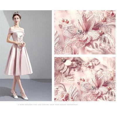 ウェディングドレス花柄 花嫁の介添えドレス 大きいサイズ/小さいサイズ パーティードレス オフショルダードレス お呼ばれドレス ひざ下丈披露宴二次会結婚式