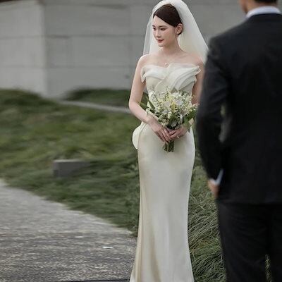 気質 ウェディングドレス 高級感 韓国ファッション87 花嫁ロングドレス ロングドレス ワンピース ドレス 新作 パーティードレス2024大人気 結婚式ワンピース 白 結婚式