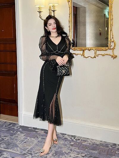 気質セクシー 発表会韓国ファッション 大人 パーティー 着痩せ セクシー 成人式 キャバドレス 披露宴 結婚式 二次会 演奏会 同窓会 正式 Vネック ウェディング チャイナドレス 卒業式