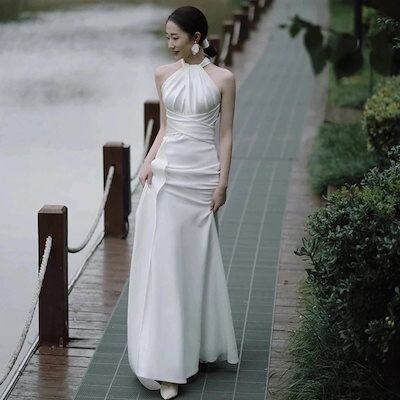 着痩せ ドレスドレス 春ワンピース ウェディングドレス成 トレーン シンプルフランス式 二次会ドレス 夏2023新作 フィッシュテールスカート/結婚式ワンピース発表会 花嫁シンプルシンプル