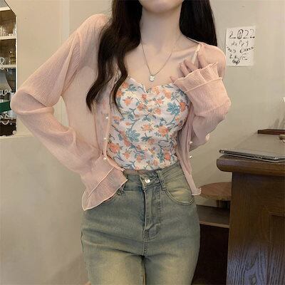 韓国ファッション UVカットカーディガン ベーシックニット紫外線対策 カーディガン ゆったりスウェット アウター長袖 トップス アイスシルク アウターメガ割