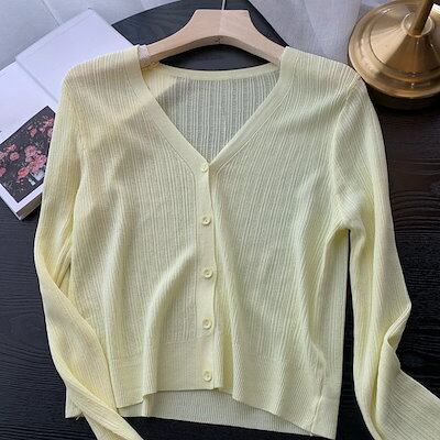 韓国ファッション UVカットカーディガン ベーシックニット紫外線対策 カーディガン ゆったりスウェット アウター トップス アイスシルク アウターメガ割