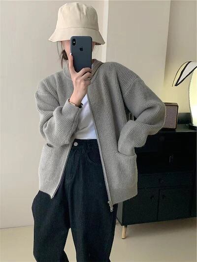 韓国ファッション 秋新作 カーディガン ベーシックニット紫外線対策 ニットカーディガン スウェットアウター長袖トップス ニットセーター 着痩せ アウター メガ割