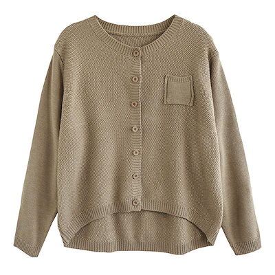 韓国ファッション秋新作 ニットカーディガン流行り丸ネック無地 ベーシックニットゆったりスウェットトップス長袖ニットトップス セーター 着痩せ セミロング丈 秋アウターメガ割