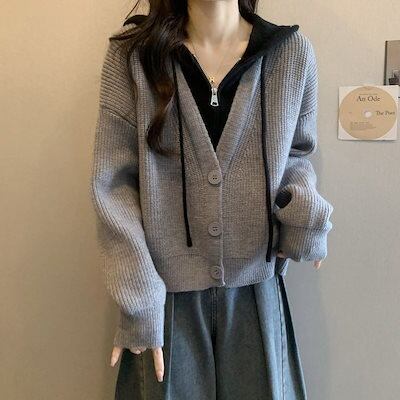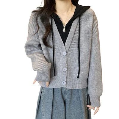 韓国ファッションニットカーディガン流行り丸ネックベーシックニットゆったりスウェットトップス 長袖ニットトップス セーター 着痩せ セミロング丈 秋アウターメガ割