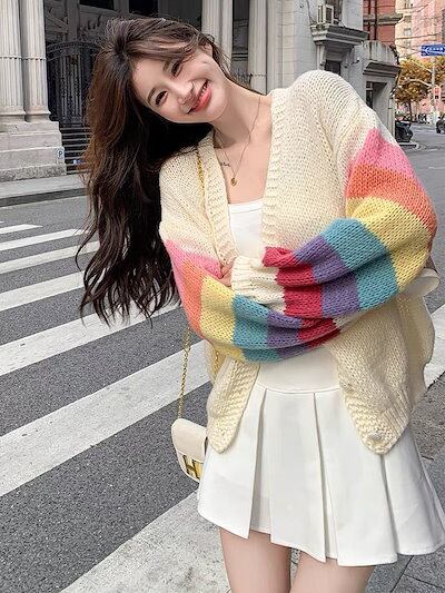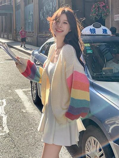 韓国ファッションニットカーディガン流行りベーシックニットゆったりスウェットトップス 長袖ニットトップス セーター 着痩せクラシック 秋アウターメガ割