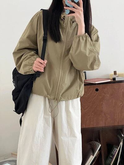 トップス 春秋 パンチングジャケット アウター 防風 ジャケット 登山服 韓国 カーキ ショート 薄い 作業着 スポーツ レディース