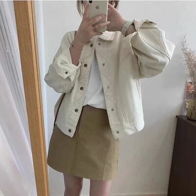 デニムジャケット デザイン アウター 秋 百掛け 韓国 レディース ツイル ブライトライン ショート トップス ルーズ