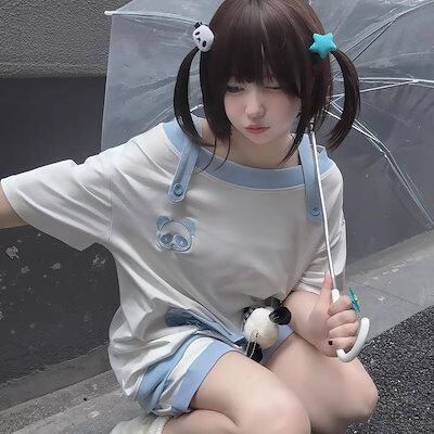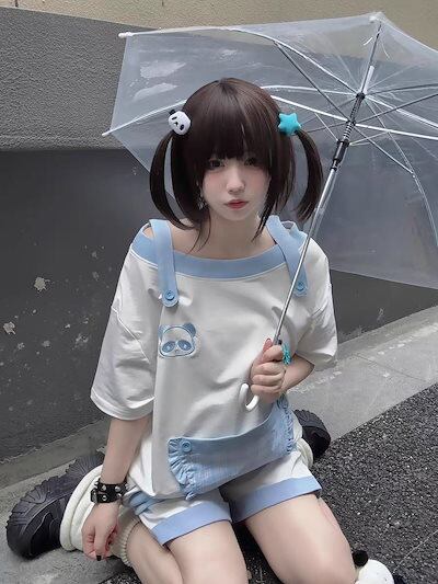 可愛い地雷 ワンピース夏 セットアップ ドレス コラージュデコルテ半袖+ショートパンツジャージセット 水色 涼しく楽ちんセットアップ韓国ファッション