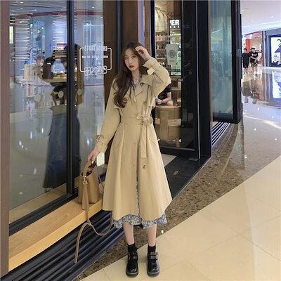 春 アウター コート 日系 ジャケット 百掛け トレンチコート 気質 ロング丈 スリミング トップス ロングコート 着痩せ アウター レディース