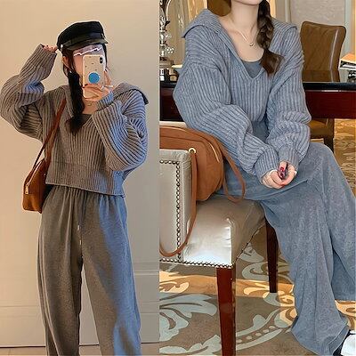 【2枚購入で 3oo円OFF!】可愛い カジュアルショット丈 セーター レディース Vネックセーター Vネックニット 秋冬 ロング ニットトップス 流行り リブニットカシミヤタッチ 福袋