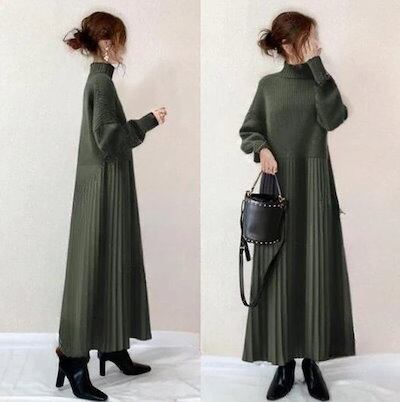 新作 シンプル ニット 切り替え ワンピース ロングワンピース ワンピース ワンピース 秋冬 長袖 Tシャツワンピース 大きめサイズ