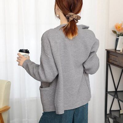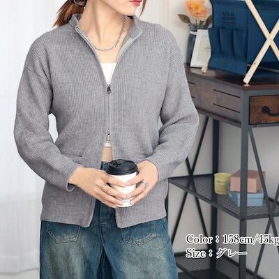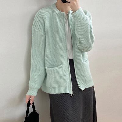 ニットカーディガン ジップアップアウターニットカーディガン 秋冬 リブニット