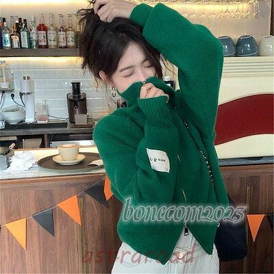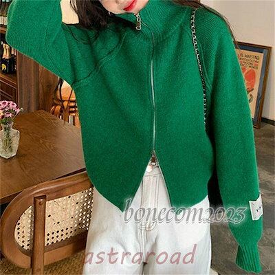 カーディガン セーター ニット トップス アウター 秋 レディース 大きいサイズ きれいめ 長袖 ハイゲージニット ダブルジッパー デイリーコーデ 大人カジュア 冬