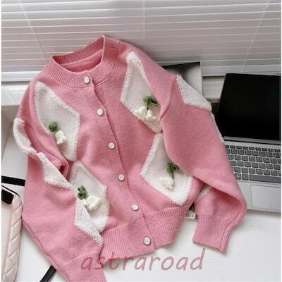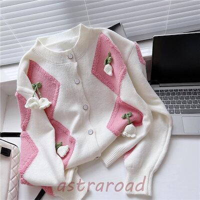 ニットセーターレディース きれいめ 長袖 ニットソー 大人 カジュアル おしゃれ セーター 花 フラワー ニットリブニットトップス ボタン 着やせ 可愛い