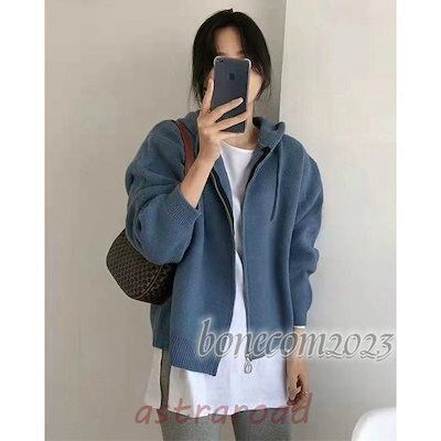 カーディガン セーター ニット トップス アウター 秋 レディース 大きいサイズ きれいめ パーカー フーディー ジッパー 無地 シンプル ベーシック 大人カジュ 冬