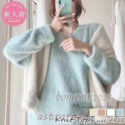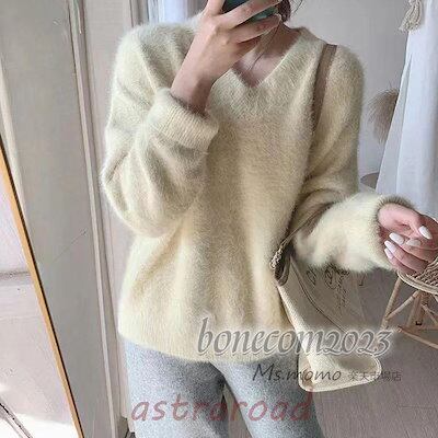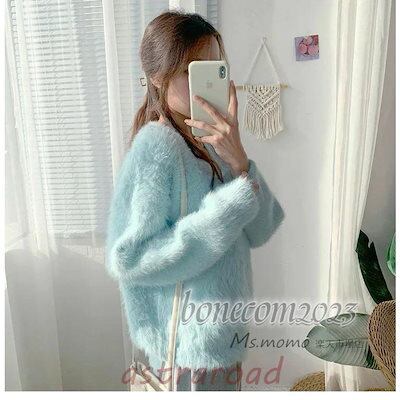 ニットトップス レディース 秋30代長袖セーター 無地vネック モコモコ ショット丈セーター ゆったりプルオーバー オシャレ韓国風 大人ニットインナー 厚手 冬