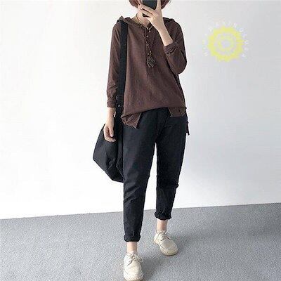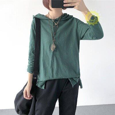 パーカー レディース 長袖tシャツ フード付き ロンT カットソー プルオーバー ロングtシャツ ロンティー スエット ルームウエア ゆったり 春夏秋冬