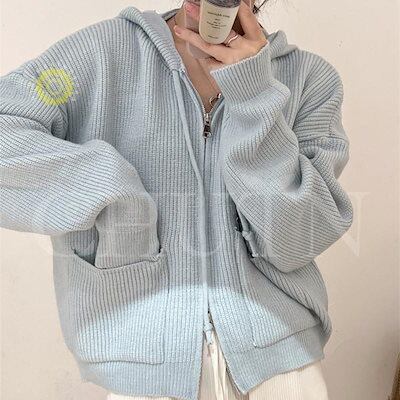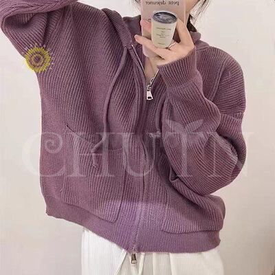 パーカー ニット ニットパーカー カーディガン レディース フード付き 長袖 秋服 ジッパー 着痩せ 羽織 トップス 春秋冬カジュアルゆったり体型カバーアウター