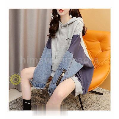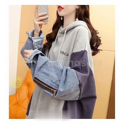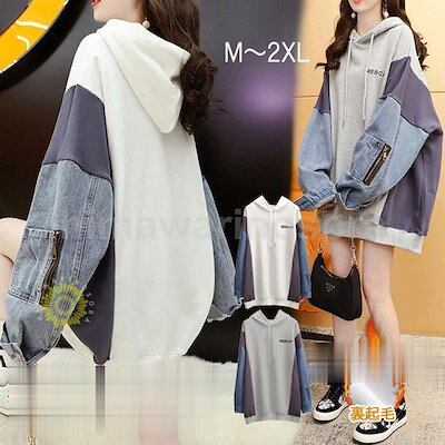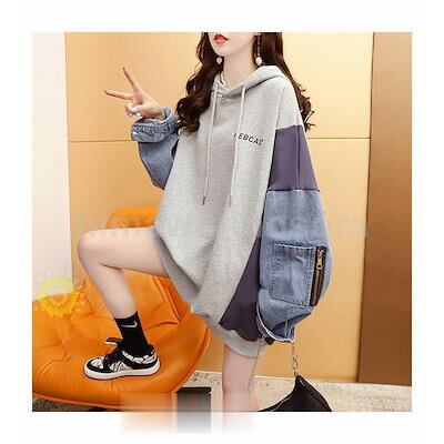 パーカー レディース 長袖 秋 冬 トップス プルオーバー ゆったり 異素材 チュニック 切り替え 薄地 厚手 裏起毛 防寒 保温 カジュアル 秋コーデ 冬服