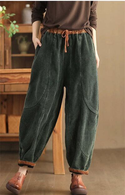 裏起毛 パンツ 裏ボア パンツ コーデュロイ テーパードパンツ ロングパンツ ボトムス レディース 防寒 厚手 無地 ポケット付き 紐付き カジュアル 秋 冬 テーパードパンツ 冬 サルエルパンツ 暖