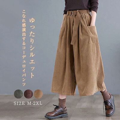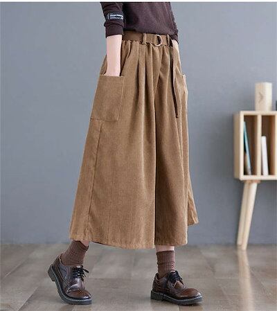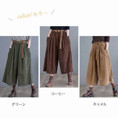 コーデュロイ パンツ レディース パンツ 秋冬 ワイドパンツ ガウチョパンツ きれいめ ウェストゴム ワイド コーデュロイパンツ 七分丈 ポケット付き 無地 シンプル ギャザー クロップトパンツ タッ