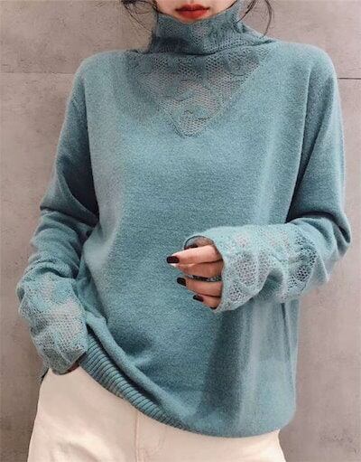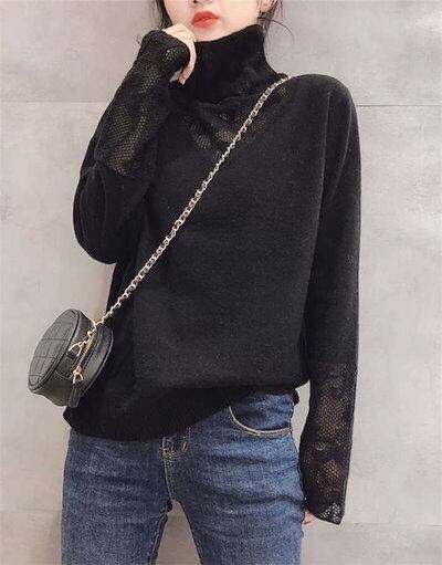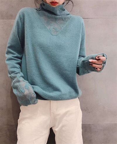 ニットセーター レディース ニットソー レース 無地 長袖 ハイネック 切り替え ニットウェア ゆったり おしゃれ トップス レースセーター オシャレ オフィス 着痩せ 大人 可愛い 大人 お出かけ