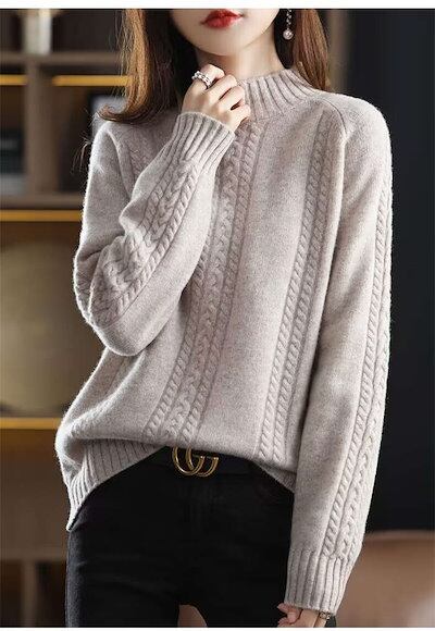 ケーブル編みニットセーター レディース 秋冬 ニット セーター ハイネックニット トップス レディース オーバーサイズ ゆったり 長袖 プルオーバー トップス 無地 ゆったり 大人 おしゃれ シンプル