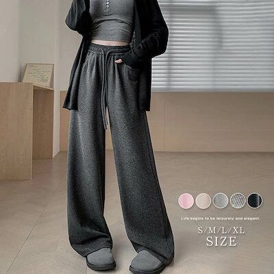 パンツ レディース ワイドパンツ ロングパンツ リブパンツ ロング ストレート マキシ丈 ロング丈 普通丈 イージーパンツ ウエストゴム 春 秋 冬 ストレートパンツ カジュアル シンプル きれめ か
