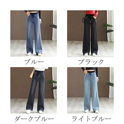 デニムパンツ ワイドパンツ レディース パンツ ボトムス ズボン ワイド ロング丈 デニム ジーンズ イージーパンツ 体型カバー ロングパンツ ウエストゴム 大きいサイズ 無地 着痩せ 美脚 通勤 ゆ