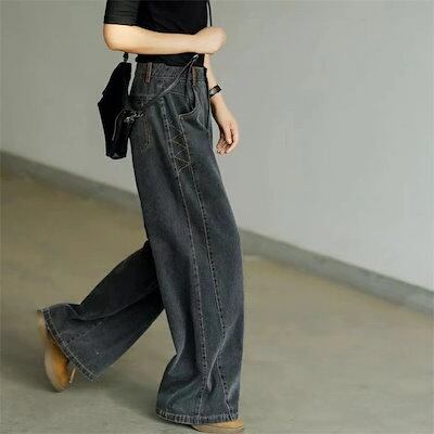 デニムパンツ ワイドパンツ デニム レディース 秋冬 パンツ ボトムス ズボン ワイド ロングパンツ ロング丈 無地 体型カバー ハイウエスト 大きいサイズ 着痩せ 美脚 通勤 ゆったり 上品 きれい