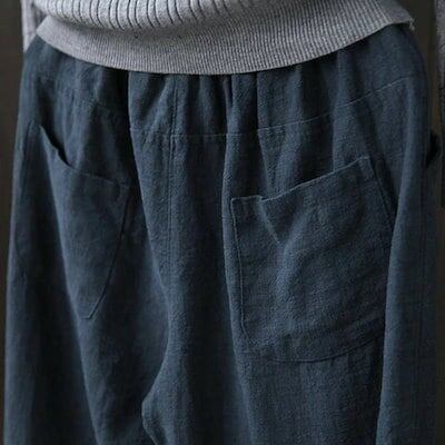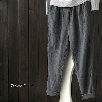 ワイドパンツ ハーレムパンツ 亜麻 綿 ロング丈 パンツ ウエストゴム入り コットンリネンパンツ 無地 ロング シンプル ポケット付き ナチュラル ゆったり ゆるパンツ ゆったりパンツ