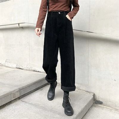 ワイドパンツ パンツコーデュロイ レディース ストレートパンツ コーデュロイパンツ コーデュロイ ストレート 春 秋冬 ウエストゴム ボトムス ズボン ポケット付き 大きいサイズ ゆったり 体型カバー