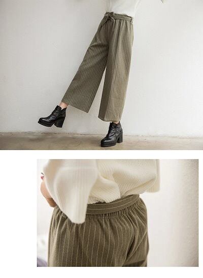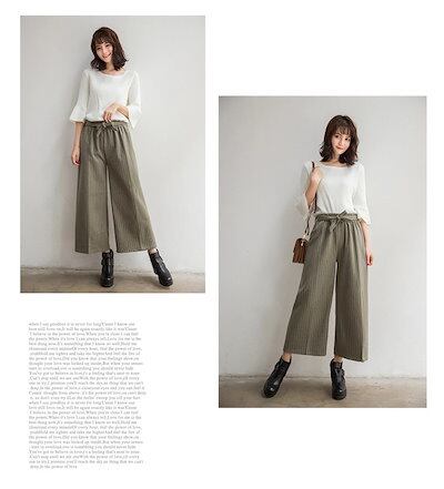 ワイドパンツ ストライプ 9分丈 レディース ガウチョパンツ 秋 冬 パンツ ベルト付き キレイめ ハイウエスト 美脚 黒パンツ 9分丈パンツ コーデ 着痩せ 通勤 オフィス OL 30代 40代 5