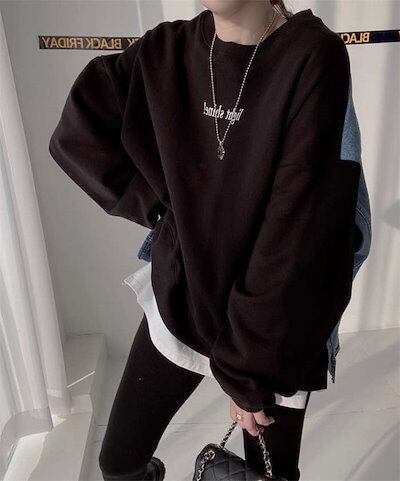 異素材切り替え トップス スウェット トレーナー レディース 春 秋 デニム シンプル 長袖 レディース メンズ ゆったり 大きいサイズ ユニセックス きれいめ 通勤 ゆったり 切り替えスウェット 体