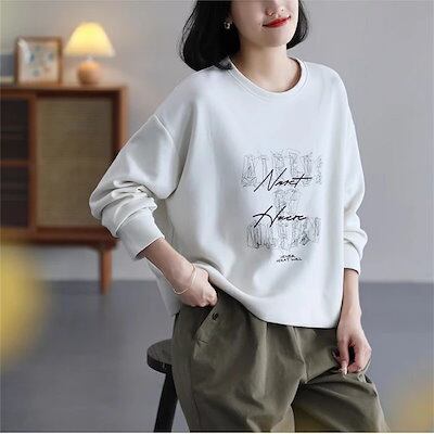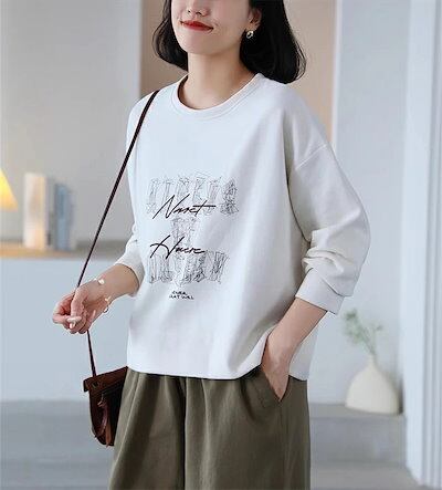 トレーナー レディース 春 秋 長袖 トレーナー クルーネック Tシャツ プルオーバー トップス パーカーTシャツ カットソー スウェット 大きいサイズ ドロップショルダー ビッグシルエット ベーシッ