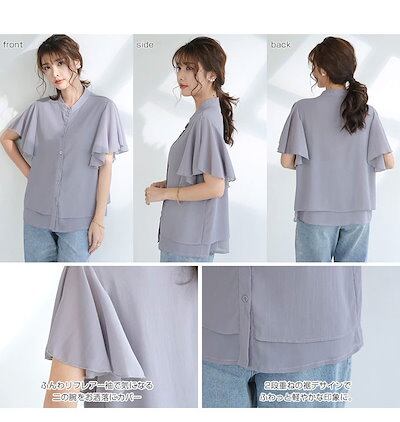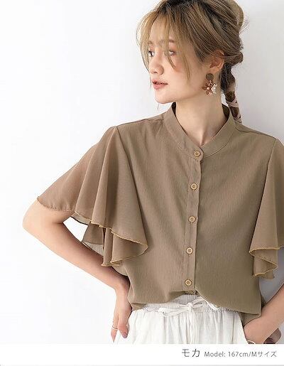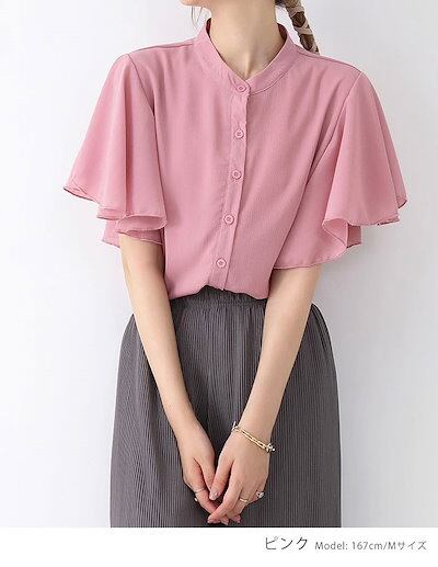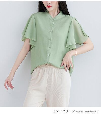 【新品限定】ブラウス フリル袖 レディース シフォンブラウス 半袖 レディース シフォン ブラウス オフィス 仕事 レディース ふんわり袖 母の日 ギフト プレゼント 大人 ファッション 春 トップス