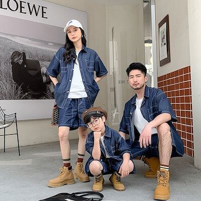 親子服 デニムシャツ パンツ セットアップ レディース リンクコーデ 親子お揃い パパママキッズ 親子ペアルック 上下セット シャツ レディース メンズ ペアルック 親子 夏 海遊び 家族 ママと娘