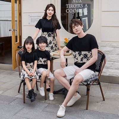 親子服 tシャツ ワンピース レディース リンクコーデ ペアtシャツ 親子お揃い パパママキッズ 親子ペアルック レディース メンズ tシャツ ワンピ ペアルック 親子 アロハ 夏 海遊び 家族 ママ