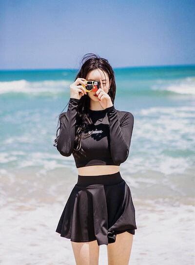 水着 セパレート セットアップ ラッシュガード スカート 長袖 日焼け対策 UV対策 レディース 女性 保守 体型カバー セーフティパンツ ブラック 海 水着 タンキニ 海水浴 温泉 プール 学生
